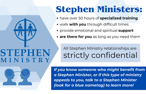 One of the ways we embody this belief is through our active Stephen Ministry program.