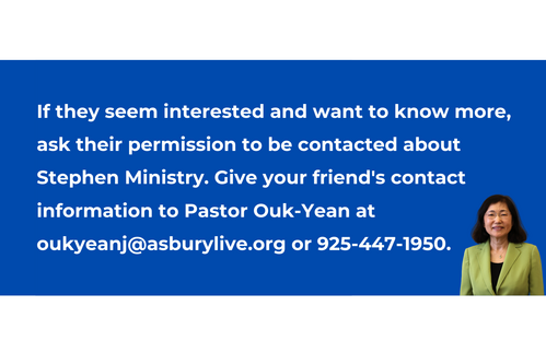 At Asbury UMC, our Stephen Ministry program is a vital part of our congregational care. Here’s how it works: