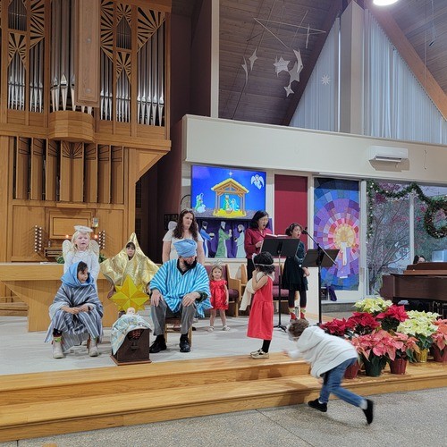A nursery is available for infants through 4-year-olds throughout Sunday morning. You can take your child to the nursery, located in the education building (across the courtyard from the church) at any time, or keep your child with you in church. We have a furnished crying room at the back of the Sanctuary with visibility and audio of the service, if that's something you find you need or want!